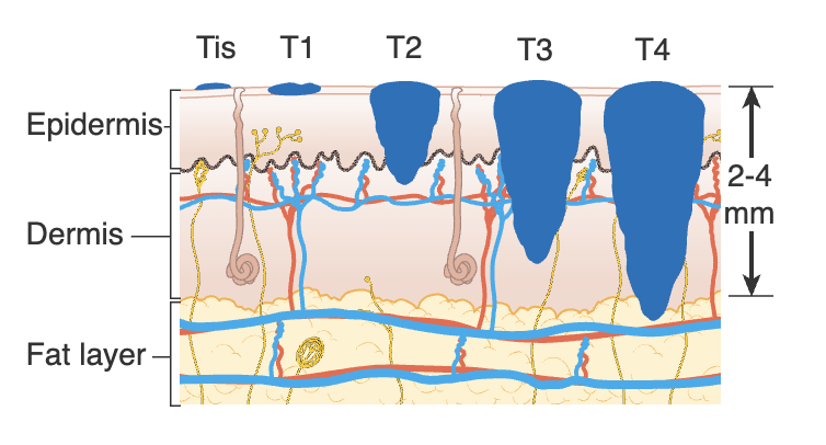 0. S0 (in situ) limited to epidermis; wide excision to muscle fascia