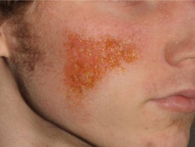 Rash distribution: nonspecific distribution in children → primarily affects skin creases and flexure surfaces (i.e. inner elbows, backs of knees) which contrasts psoriasis (extensor surfaces)