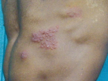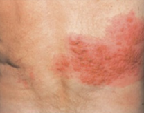 Extremely painful, self-limiting vesicular rash due to the reactivation of varicella zoster virus in dorsal root ganglion nerves; is also known as herpes zoster