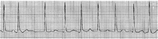 EKG rhythm strip of AF; note irregular R-R interval (Source: OpenI, NLM)